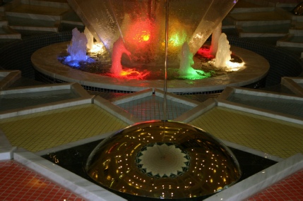 Laminar jets create an attractive clear rod of water effect, combined with lights