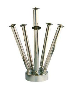A group of six mushroom nozzles placed in a circular line on a round